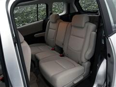 将第二排座椅向前滑动则可进入第三排,第三排座椅相对简单,在造型上没有前面那么讲究,靠背和坐垫比较平直,虽然轴距较短,但是较高的车顶和高挑的车顶弧线会带来相对充裕的头部空间,调整好坐姿对于腿部是一个弥补。