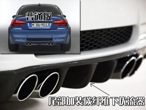 尾部加装了碳纤维下扰流器,充分利用了空气动力学,有效保证高速行驶轮胎抓地性能。并且细节之处也有改动,悬挂车牌的部分被换成了碳纤维材料。同时换装知名厂商BBS的运动内陷合金轮毂。