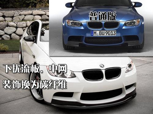 原装2010款M3本身就拥有多处碳纤维套件,但是这款改装版可谓是登峰造极。其前脸换装了一整块碳纤维下扰流板,同时将原装中网镀铬装饰边换为碳纤维材料,配合白色车身更为霸气。引擎盖增加了两处鲨鱼鳃式的发动机散热口,有助于降低发动机热量。