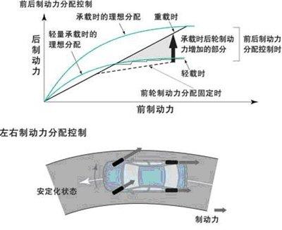 电子制动辅助系统“EBA”和制动力辅助系统“BA”(也称为“BAS”)。能够通过判断驾驶者的刹车动作(力量及速度),在紧急制动时增加刹车力度,从而将制动距离缩短。对于像老人或女性这种脚踝及腿部力量不是很足的驾驶者来说,该系统的优势则会表现得更加明显。而机械制动辅助系统“BA”,其实是电子紧急制动辅助系统“EBA”的前身。