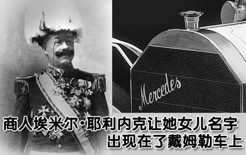 而“梅赛德斯”实际上是一位美丽女孩的名字,1889年9月16日,维也纳商人埃米尔·耶利内克(Emil Jellinek)的第三个孩子诞生了,取名梅赛德斯(Mercedes),西班牙语意为“优雅”。随着梅赛德斯的逐渐长大,她的父亲对汽车产生了浓厚的兴趣,并注意到了戴姆勒汽车公司。1893年,埃米尔·耶利内克订购了一辆戴姆勒凤凰牌(Phoenix)汽车。埃米尔·耶利内克酷爱赛车,当时使用笔名参加比赛是一种时尚,所以埃米尔·耶利内克就以其女儿“梅赛德斯”的名义报名参加了比赛。