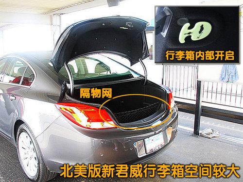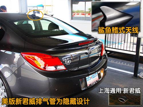 北美版新君威配备了信号较强的鲨鱼式的天线,这样的配置一般在豪华车中才可以看到。同时北美版新君威尾排采用了隐藏式设计与国内版本的外露式不同。