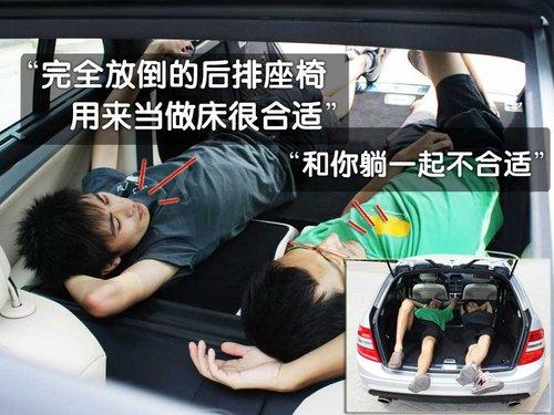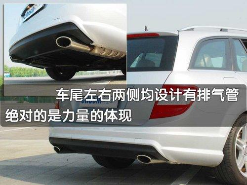 很多人会指着这款奔驰C级旅行车说:看,这不就是加了一个大尾巴吗?大家的看法我想是不无道理的。不过至少从外型上来说,C级旅行车与普通C级轿车除了正面上看几乎无法分辨之外其它的每一个角度C级旅行车都会显得那么与众不同。从B柱开始至车尾,奔驰C级旅行车的侧面线条由于外形的设计被拉伸的非常明显。车顶的两条铝合金行李架对于C级旅行车来说显得尤为重要,而如果车主选了了官方提供的套件,那么除了在车顶或是车尾加装自行车架之外,托挂上一台小拖车也是没有问题的。自行车、行李箱又或是滑雪板、冲浪板,任凭您能够想到的东西不妨都尝试着举到车顶上面——这真的是一种有趣的尝试。