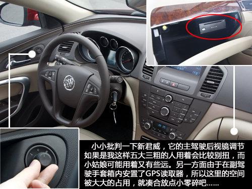 这是新君威的两个小细节,需要批判一下,个人感觉它的后视镜调节旋钮很不方便,或者应该说很不舒服。如果你是个纤细小姑娘的话,这里需要你前倾深长胳膊去调节。而新君威虽然配备了GPS系统,但是它的GPS读取器被放置在了副驾驶手套箱,而手套箱基本放不下什么略大的物件了。