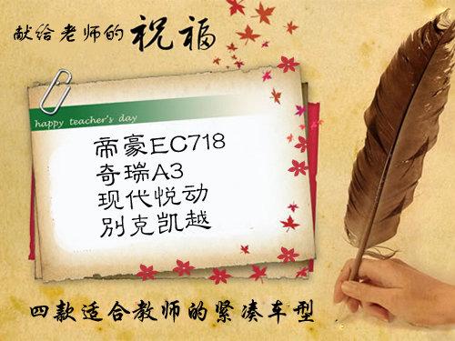 第26个教师节后天就要到了,作为一名老师的家属和经常客串一把“老师”的人,我先向各位辛勤劳作的老师们道声:辛苦了您!作为一名编辑,我无法给予您物质上的奖励,但是如果您想购车的话,我倒是可以给您精神上的建议。用语文老师的话说:“富贵者赠人以财,仁人者赠人以言”嘛!