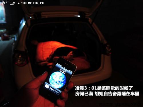 夜深了,时间在众人的欢笑中流逝很快,转眼已是凌晨3:01,房间有限出现了狼多肉少的局面,而PASSAT旅行版的后备厢再次体现了不可忽视的优势,打开后备厢放倒后排座椅,后备厢虽有微小的倾斜但是充裕的空间已经可以弥补这个小小的缺陷,胡姐姐睡在里面安心指数同样为5星,后备厢实用性非常强。