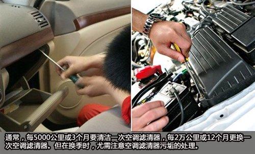 经过了夏季长期运作,空调也该在换季时进行清洗了。通常,每5000公里或3个月要清洁一次空调滤清器,每2万公里或12个月更换一次空调滤清器。但在换季时,尤需注意空调滤清器污垢的处理。