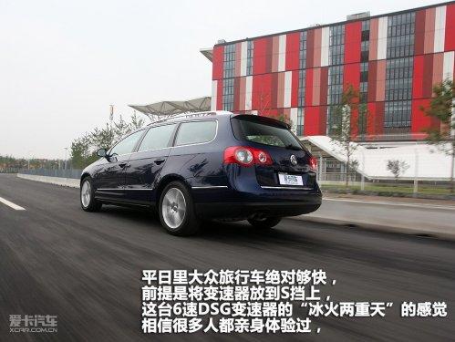 平日里大众旅行车绝对够快,前提是将变速器放到S挡上,这台6速DSG变速器的“冰火两重天”的感觉相信很多人都亲身体验过,D挡偏重舒适和省油,S挡则一下将换挡转速区提升的很高,而换挡拨片的存在则很好的中和了两种有点极端的方式。