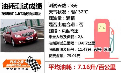 除了强大的动力外,它的油耗也是我们所关心的,我们分别测试了1.6T版英朗XT的综合油耗和1.6T版英朗GT的环路油耗,最终综合油耗成绩为10.1升/百公里,而环路油耗为7.16升/百公里,由此也看出驾驶方式和路况对于油耗的影响。