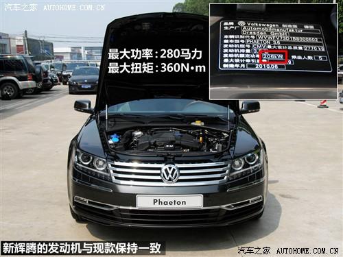 新辉腾的3.6 V6发动机在6300转的时候可以输出最大功率280马力(206KW),在2500-5000转的区间均可以输出最大扭矩360N·m。由此可见,新辉腾整套动力总成并没有作更改,与现款一样。