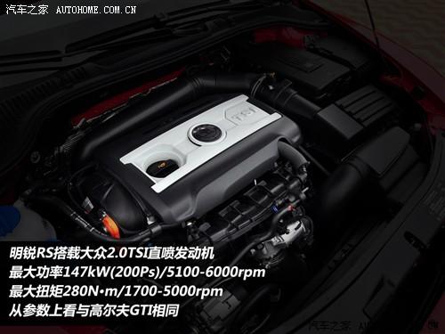 明锐RS动力较之前款型有着明显改善,搭载2.0TSI直喷发动机,最大功率200Ps/5100-6000rpm,最大扭矩280N·m/1700-5000rpm,发动机参数与高尔夫GTI和大众CC相同,配合6挡双离合变速箱驾驶感受会有提升。