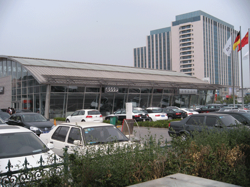 北京亚之杰汽车贸易有限责任公司维修车间面积为6000平方米,设有机修车间、车身维修车间、车辆检测区和车身清洁区等,年维修量45000台次。亚之杰奥迪用于销售的新车停车场面积达8000平米,设有专人管理,保证了商品车的维护和安全。
