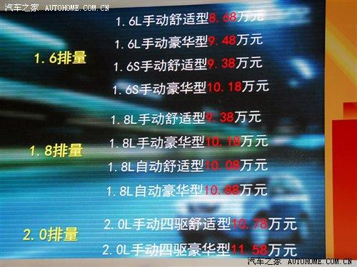 | 1.6S-MT舒适型 | 9.38 |