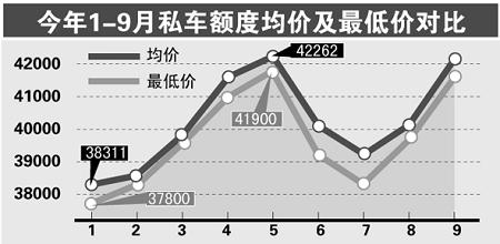 本月私车额度最低中标价为41800元,比上月上涨了2000元,平均中标价42180元,比上月上涨了2011元,双双创下今年5月以来的新高。 9月私车额度最低价平均价双双创年内第二高 投标者“中标心切”拉高价格。