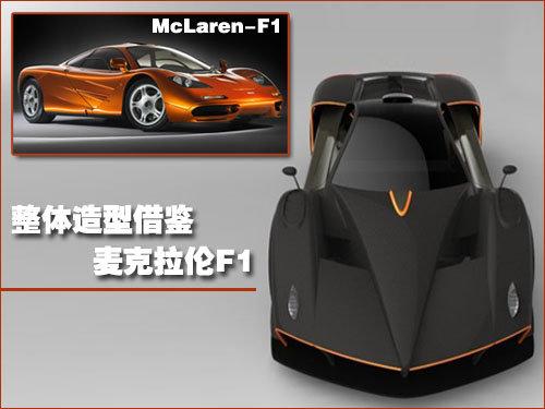 而车身的整体轮廓造型源自麦克拉伦F1,尽管该车型设计时代涉足1993年,但扁平贴地的梭似造型,绵延整个腰线的波浪型轮廓,仍然给帕加尼概念车型带来了优异的气动外观,麦克拉伦似已经成为一个时代车型的标志,而帕加尼概念车将继承这一点。