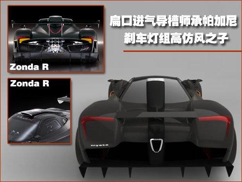 三款超跑的结构细节在合成概念车型时已做了相应的修改和完善,使得概念车能获得像F1赛车一样优秀的空气动力学造型。车顶至车尾部的造型则来源于帕加尼ZONDA R,能够明显看到在车顶部的扁口进气导槽,沿车顶流线下滑,直接连通至后部引擎舱,与车身双侧“L”型进气口一同为后舱的“野兽”提供新鲜空气。