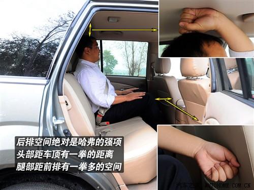 空间大、更实用是SUV车型的普遍特点,在这方面外观大气的哈弗车内的表现同样不错,身高175cm的编辑坐在前排头顶还有四指的空间,而坐入后排后头部空间增加至一拳,腿部则有一拳以上的距离。