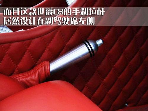 世爵C8 Laviolette这款超级跑车与其他超级跑车最明显的不同就是变速箱,因为这款价值超过400万元以上的世爵C8 Laviolette,匹配的居然是六速手动变速箱。而且这款超级跑车延续了世爵一贯的作风,换挡手柄设计非常独特。除了变速箱和换挡手柄以外,世爵C8 Laviolette的手刹拉杆居然设计在副驾驶席左侧,这一点让人很难理解。