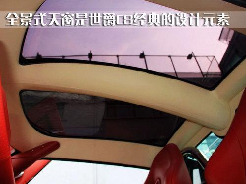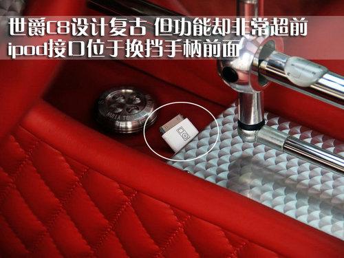 世爵C8 Laviolette的车顶采用全景式设计,这种设计方式同样也沿用在世爵其他跑车上。另外,世爵C8 Laviolette虽然设计非常复古经典,但很多娱乐功能却并不缺乏,Ipod接口位于换挡手柄前面,而且还可以特别订制更多的配置,比如导航系统和更好的音响系统等。