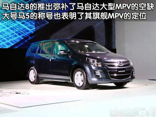 马自达8是7人座的MPV,长、宽、高分别为4868mm、1850mm、1685mm,完全可以满足消费者对也车内空间的要求。马自达8标志性的大刀造型的头灯锐气十足,进气格栅采用镀铬条状设计,车身线条更加明显,体现出更有冲击力的风格。