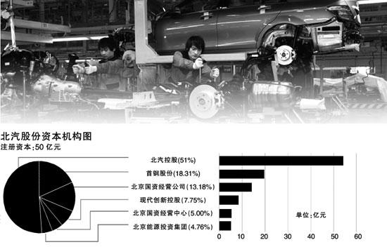 目前,北汽股份装入的资产包括北汽有限51%的股权、新能源公司100%的股权、动力总成公司100%的股权、北汽投资持有的北京现代的股权,以及乘用车事业部的实物资产。