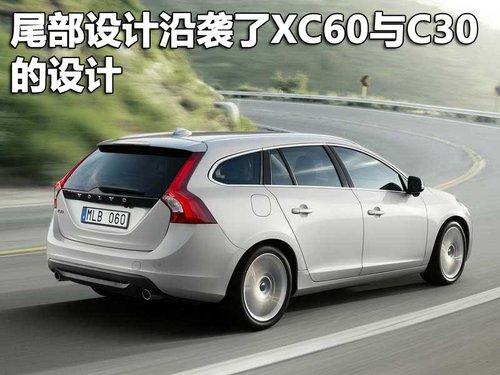 在外观方面,在B柱以前,V60都与S60有着相同的设计与风格,因此不论LED车头标识定位灯、圆滑但略微修长的头灯设计、尺寸合宜的水箱罩与新厂徽设计,都被完整的保留在V60。这些设计元素是目前沃尔沃车型的统一风格,从XC60就已开始。