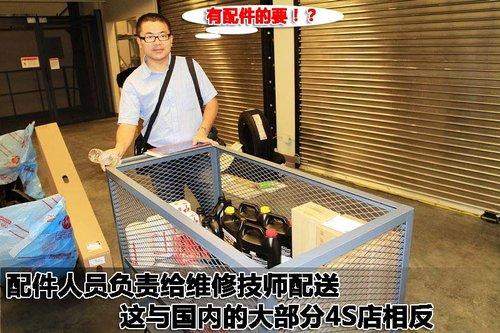 配件库的工作人员负责将维修技师需要的配件及油液送到相应的工位,大大提升了维修保养得工作效率,但国内大部分4S店却是相反的。