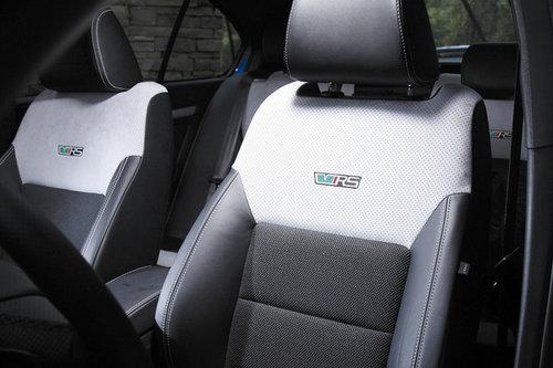 与激情洋溢的外观相对的内饰风格也与普通版明锐有着不少区别,首先在色调上,明锐RS首次采用了全黑的内饰颜色,整体风格告别了商用车的严肃和家用车的温馨,更像GTI般勾人心弦。运动座椅有很好的包裹性,侧面支撑很出色,可以提供很好的驾乘舒适性;面料采用了皮革以及织物的混搭,多用于高档车Alcantala材料的靠背舒适透气,符合轿跑车强调运动和舒适的定位。三辐真皮方向盘的造型独特,既与普通明锐不同,也与其它运动车型不同;通过集成的多功能控制键和方向盘换档拨片使驾驶员可以手不离开便完成各项操作,也提升了驾驶的乐趣。值得说明的还有一项就是明锐RS采用的个性化迎宾踏板,这个类似方格旗的踏板为这款轿跑车增色不少。