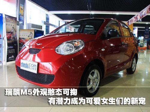 瑞麒M5的外型尺寸没有变化,长×宽×高,仍然是3905×1587×1527毫米,虽然M5比M1长了30厘米以上,但3.9米长的短粗身段,依然保持了最小的三厢轿车的称号。M5的侧身设计与M1基本一致,夸张的腰线设计令车身看起来不那么臃肿。后门依旧采用了奇瑞汽车常见的侧开式设计,设计十分新颖。M5配备了尺寸为175/60 R14 5幅式铝合金轮毂,R标在中间显得十分抢眼。同价位车型中能够配备铝合金轮毂的车型也并不在多数。