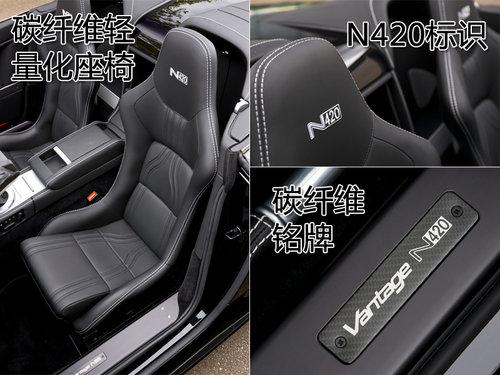 在内饰设计上,这款N420敞篷跑车采用了阿斯顿-马丁的Iridium暗度渐变设计和特殊的N420门槛板铭牌,同时还为该车配备了采用对比色缝线的轻量级碳纤维运动座椅。