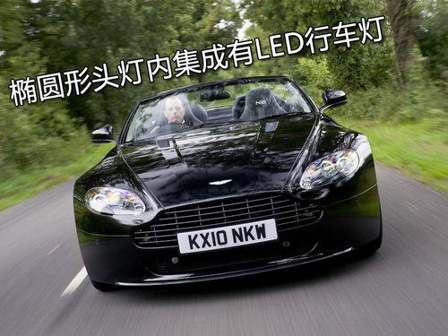 这款V8 Vantage N420敞篷车传承了众多赛车元素,阿斯顿马丁标志性的前脸与V8 Vantage Roadster相比并没有什么差别。N420前包围下方增加了一块碳纤维翼子板,椭圆形头灯内集成有LED日间行车灯。