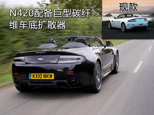 2010年6月份阿斯顿马丁发布了一款V8 Vtange N420硬顶车型,这款车的设计灵感源于纽博格林24小时耐力赛车型V8 VantageN400。最近阿斯顿马丁又发布了V8 Vantage N420敞篷车官方图片,它将于巴黎国际车展亮相。