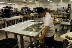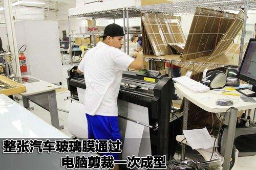 美国的DC汽车制膜工厂虽然规模较小,但是效率很高,大量采用机械设备和电脑控制。在无尘恒温的环境下,进行电脑切割和裁剪。