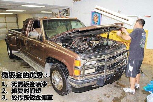 微钣金可以在不伤害到车漆的情况下对汽车表面由于碰撞产生的凹坑进行修复,与传统钣金技术相比较的优势为,无需钣金后喷漆、修复时间短以及费用便宜。