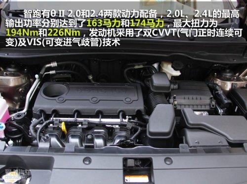 动力总成:国产智跑将搭载现代集团最新开发的ThetaII系列四缸汽油发动机,排量有2.0L与2.4L两款。最大功率分别为105kW和128kW,最大扭矩为197Nm和227Nm,与之匹配的是与ix35相同的5速手动和6速手自一体变速器。