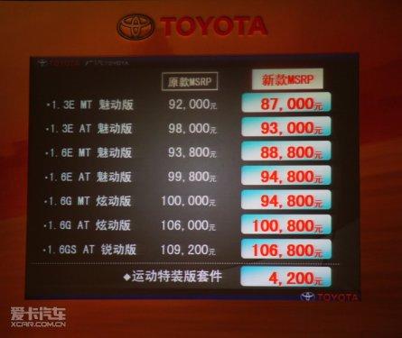 广汽丰田新雅力士共推出了1.3E魅动版手动挡和自动挡、1.6E魅动版手动挡和自动挡、1.6G炫动版手动挡和自动挡、1.6GS锐动版自动挡等共7款车型。