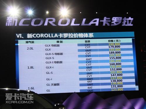 此次上市的新卡罗拉除了1.6L和1.8L两款车型外,还增加了2.0L车型,此外新卡罗拉1.8L和2.0车型配备了CVT变速箱。这次上市的新车总共包含10款,价格为从12.38万元到19.98万元。