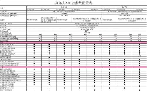 2011款高尔夫配置单