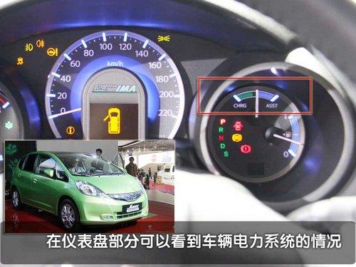 本田在普通版飞度的基础上对外形进行了一些修改,新设计的前大灯加入淡蓝色,新尾灯则变得晶莹剔透,车尾还加入了新设计的大包围和镀铬装饰。座舱内采用单色仪表台,仪表背光和指针也换为蓝色。尽管在地板下加入了电池组和IMA控制系统,但是载物空间仍然达到300升,如果翻倒后排还能扩充到831升之巨,飞度的空间优势得到保留。