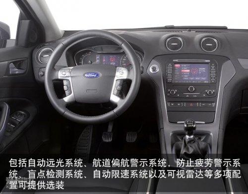 新蒙迪欧配置上非常丰富,提供包括自动远光系统,航道偏航警示系统,防止疲劳警示系统,盲点检测系统,自动限速系统以及可视倒车雷达等多项高端配置可供选择。