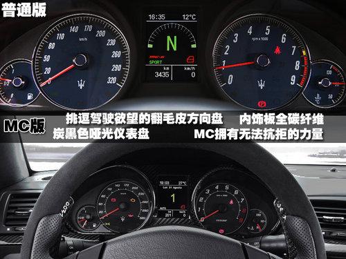 进入GranTurismo MC Stradale的驾驶舱,突袭而来的竞技感甚至比外观来的更要快。极具挑逗驾驶欲望的方向盘,全部由握感极强的翻毛皮整块包覆。内饰板均为碳纤维材质,再加上炭黑色哑光仪表盘,MC拥有无法让人抗拒的力量。