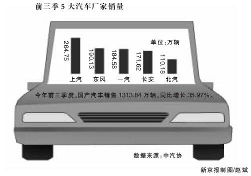 中国汽车工业协会昨日发布最新统计数据称,今年前三季度,国产汽车产销1308.27万辆和1313.84万辆,同比增长36.10%和35.97%,逼近去年全年水平。而全年销量或将超过美国历史最高销量,达到1700万辆,并在2015年实现2500万辆产能规模。