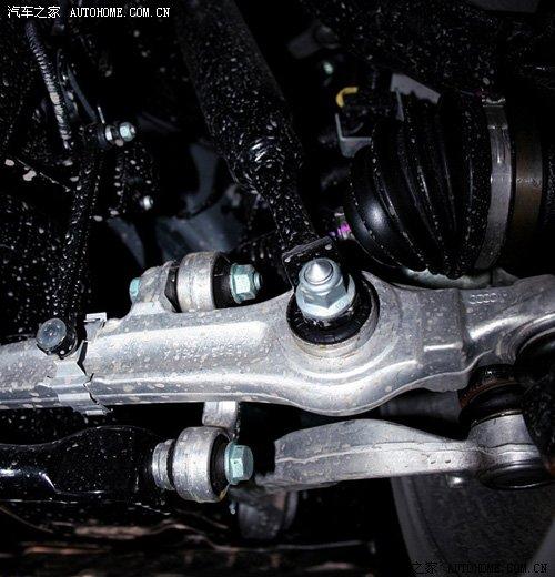 上图为PASSAT新领驭的前悬挂实拍图,悬挂结构的复杂程度一目了然,虽然新领驭不像上一款车型A4L那样以运动作为宣传推广,新领驭甚至并不涉及到运动,作为有着商务传统的PASSAT使用多连杆前悬挂完全是为了舒适性,与A4L相同的是新领驭同样采用纵置发动的结构,这样才得以布置下结构复杂的悬挂。