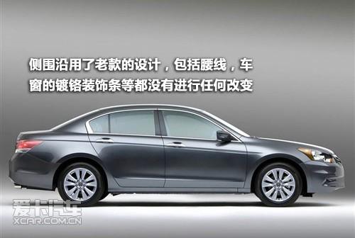 老款雅阁侧面部分的设计得到了保留,在2011款雅阁身上没有任何的改变,连一些镀铬装饰件等小细节都没有进行丝毫的调整。