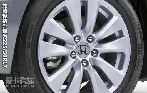 在轮胎方面现款雅阁的规格为215/60 R16,2.4L最高配车型采用的225/50R17。而2011款雅阁的轮胎规格有望全部升级为225/50R17,此外也有可能推出几款不同样式的轮毂供选择。