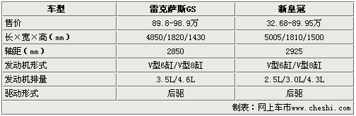 雷克萨斯GS与新皇冠售价最低相差8.95万