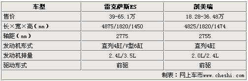 雷克萨斯ES与凯美瑞售价最高相差28.62万