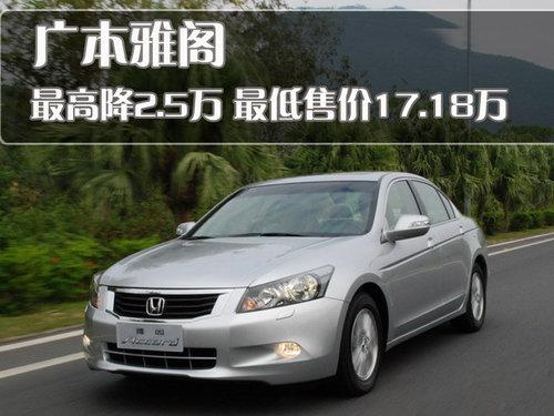 当提到中级车型大家也许会不约而同的想起广本雅阁,新雅阁凭借其大气的外观、舒适的空间和豪华的配置对于中级轿车市场的构成起到了举足轻重的作用。去年,广汽本田又对第8代雅阁进行了小改款,对原来车型的配置有一定程度提升,部分车型增加了智能钥匙和后遮阳板等配置,提高了雅阁整体车型的性价比。近日根据网上车市价格监测系统显示,目前雅阁现金最高优惠2.5万元,最低售价逼平17万。具体价格以及优惠幅度如下: