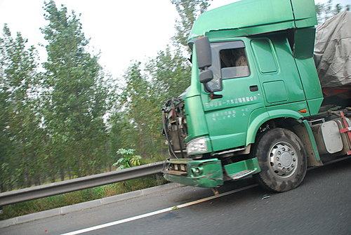 因为前方车祸的原因,堵车绵延十余公里,时间长达4个小时。当车流缓缓开动时,我们才发现原来前方几公里内有数十辆大货车追尾相撞,车祸现场十分惨烈,经过时感觉十分恐怖。