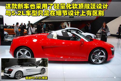 作为奥迪品牌旗下的超级跑车,R8敞篷版所搭载的5.2升FSI V10发动机已经让很多人非常动心了。随后,奥迪R8敞篷版将降低门框,推出搭载4.2升FSI V8引擎的新产品。在今年的巴黎车展上,奥迪R8 4.2L敞篷版已经正式亮相,随后将首先在欧洲开售,预计价格约合人民币113万元左右。